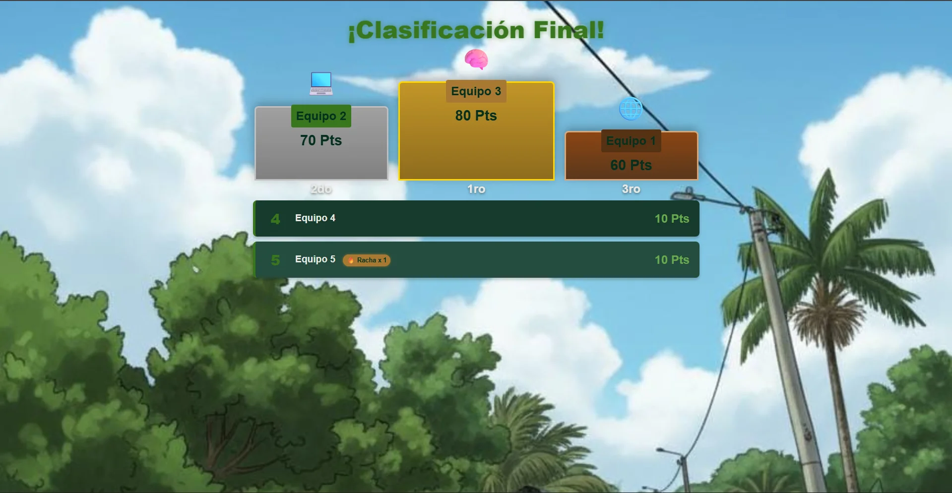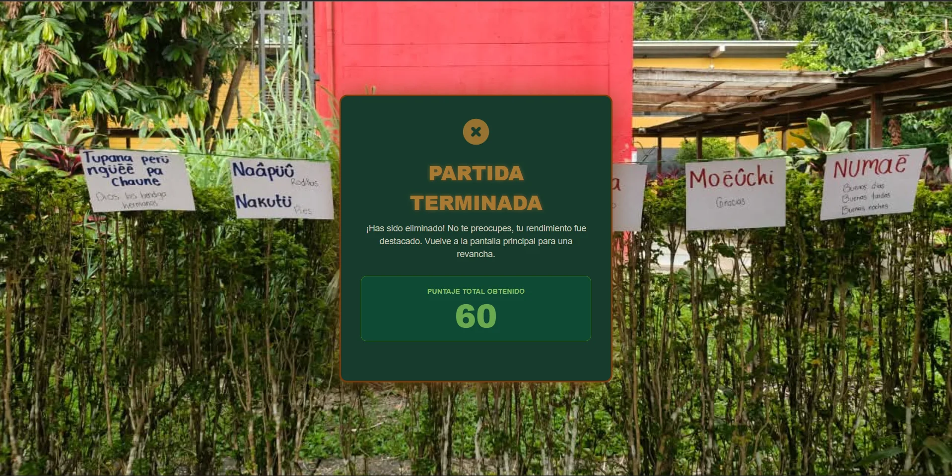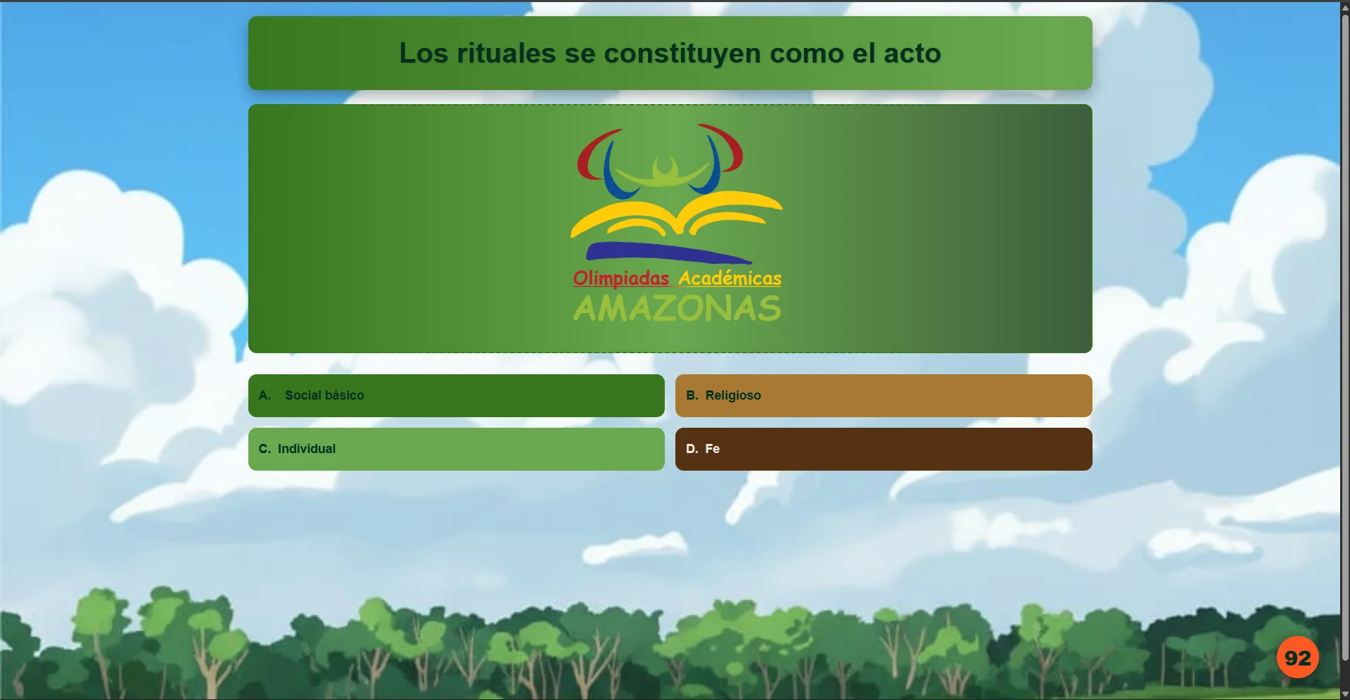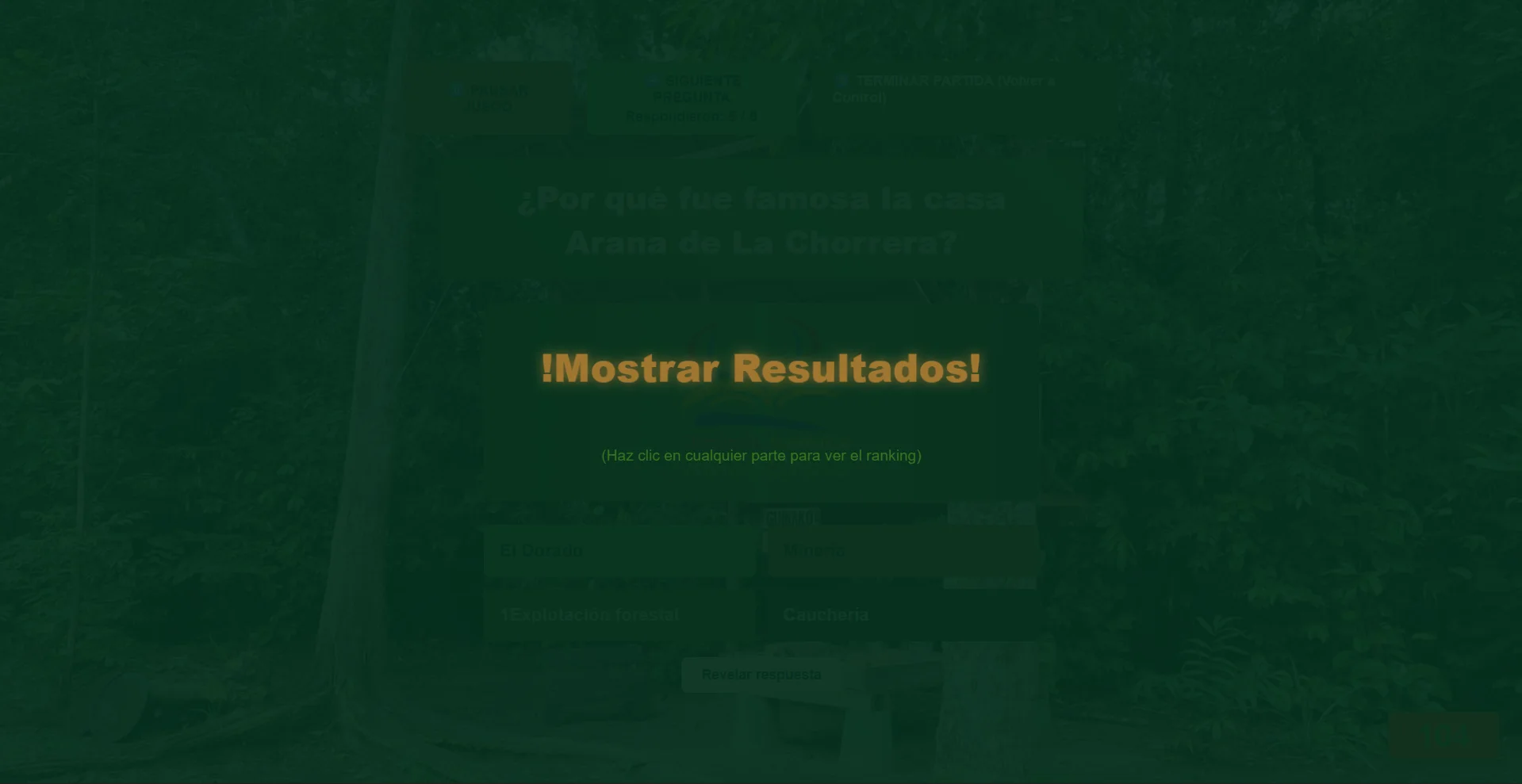 Este proyecto fue desarrollado dentro del semillero universitario denominado ForGames, en el cual nos organizamos en grupos para asumir distintas tareas necesarias para la creación del juego. En mi caso, formé parte del grupo técnico, encargado del área de programación. El juego está basado en un sistema de preguntas relacionadas con los contenidos abordados en la asignatura Contexto Amazónico. El participante que logre responder correctamente la mayor cantidad de preguntas resulta ganador. Al iniciar la partida, cada jugador puede asignarse un nombre y elegir un ícono que lo represente. El desarrollo de la partida es controlado por un moderador, quien debe autenticarse previamente mediante un código. Este moderador tiene la capacidad de iniciar y pausar el juego, mostrar la respuesta correcta de cada pregunta, visualizar cuántos jugadores han respondido y, una vez todos hayan contestado, avanzar a la siguiente pregunta. Desde la perspectiva del jugador, una vez el moderador inicia la partida, se muestra la primera pregunta junto con cuatro opciones de respuesta, de las cuales solo una es correcta. Cada pregunta cuenta con un tiempo límite para ser respondida y el juego continúa hasta llegar a la última pregunta. El sistema está programado para funcionar de manera offline y cuenta con un mecanismo de guardado de las respuestas de los jugadores, con el fin de prevenir la pérdida de información en caso de errores o imprevistos durante la ejecución del programa.