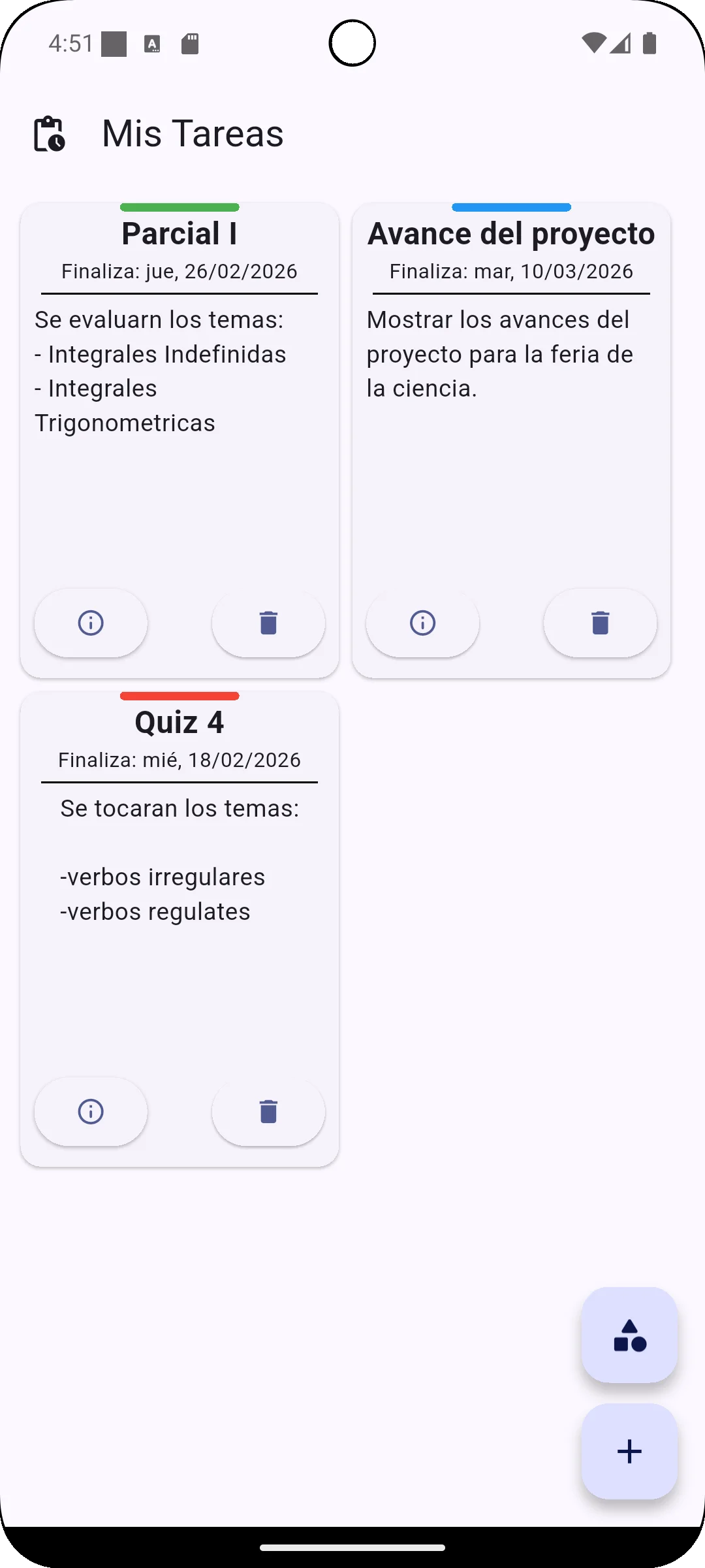 Taski es una aplicación móvil diseñada para la gestión eficiente de tareas diarias. Con una interfaz intuitiva y fácil de usar, Taski permite a los usuarios crear, organizar y priorizar sus tareas de manera efectiva. La aplicación ofrece funcionalidades como recordatorios y categorización de tareas , ayudando a los usuarios a mantenerse organizados y productivos en su vida diaria.